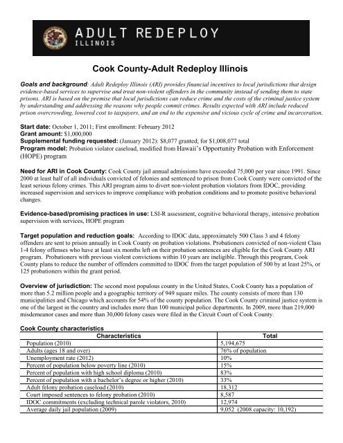 Cook County Adult Redeploy Illinois Illinois Criminal Justice